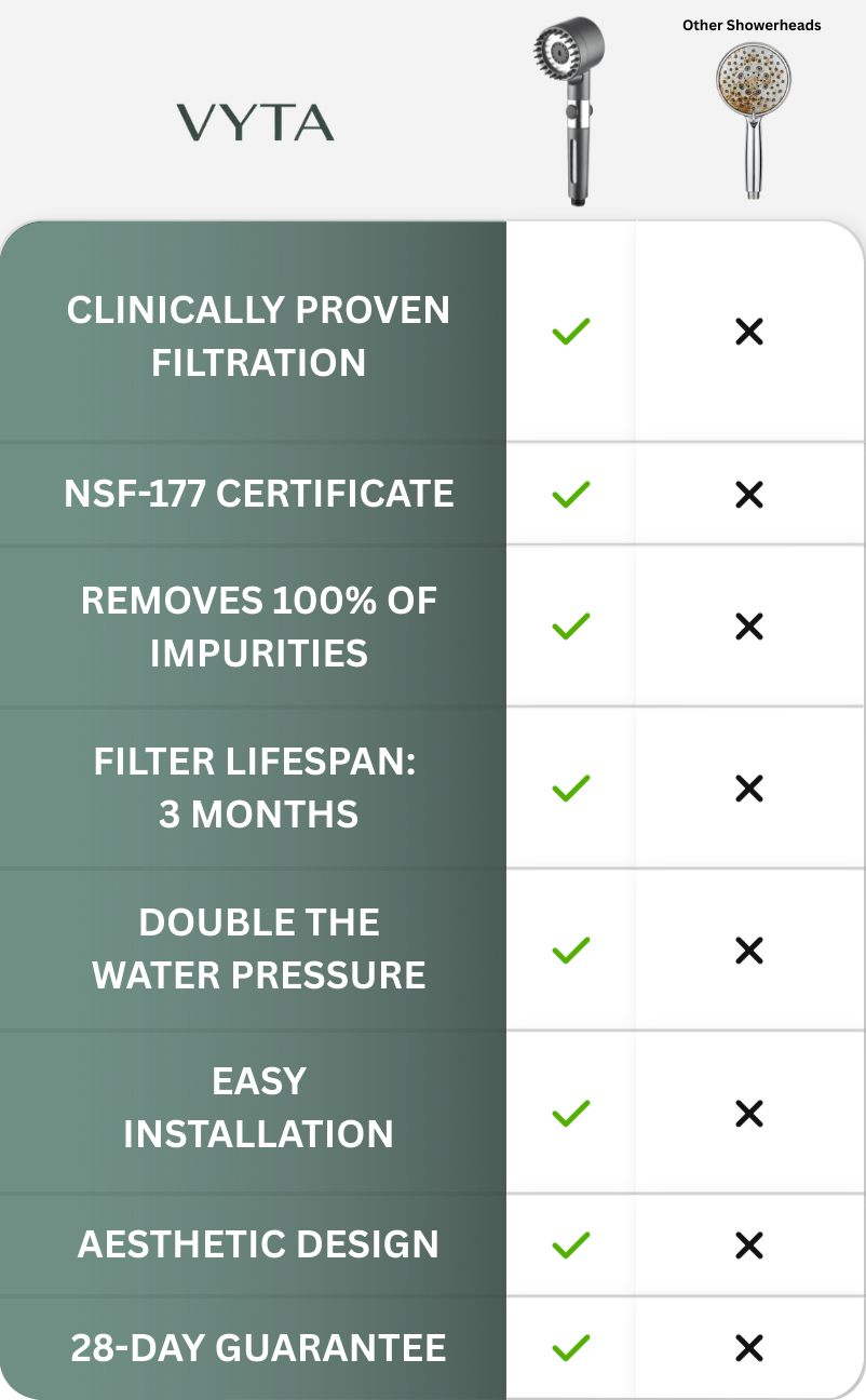 As someone with sensitive skin, the VYTA™ has been a game-changer. The water feels silky, and I no longer experience dryness after showering. Highly recommend to anyone craving a spa-like experience at home.